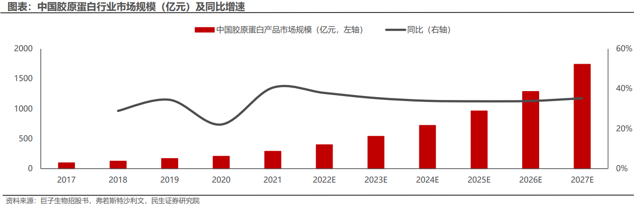 中国胶原蛋白行业市场规模及预测(2017-2027年)