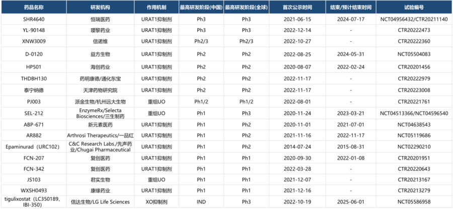 目前在研的治疗高尿酸血症的药物进展